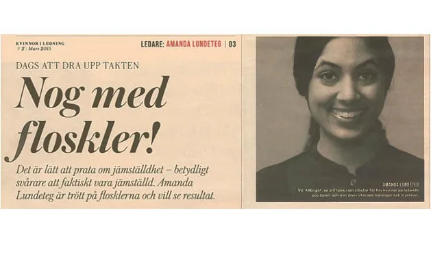 Här kan du läsa hela artikeln i Dagens Industri. Vill du dela med dig av de floskler du hört kan du göra det under hashtagen #jämflosk. Se vad andra skrivit om jämställdhetsfloskler här.